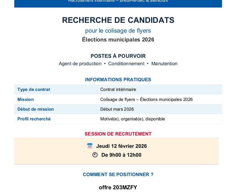 RECHERCHE DE CANDIDATS pour le colisage de flyers des Élections municipales 2026.